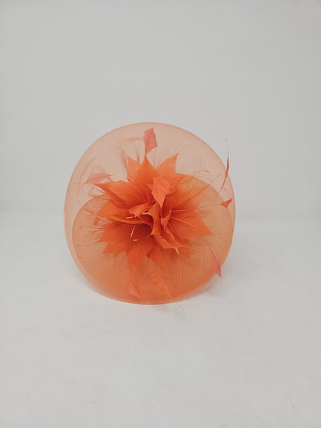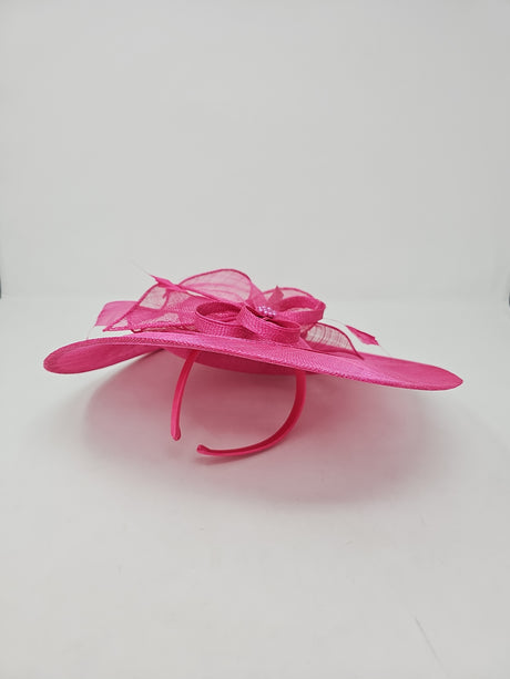 Lipstick Pink Feather & Bow Round Disc Fascinator