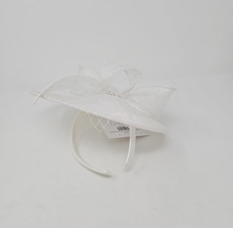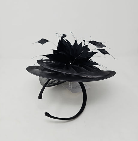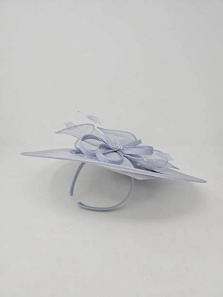 Metallic Bluebell Feather & Bow Round Disc Fascinator