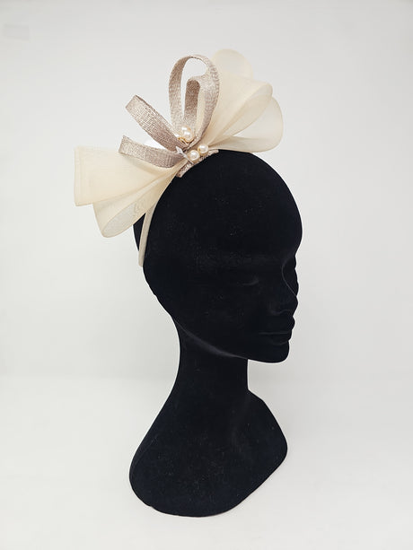 Lipstick Pink Bead Bow Loop Hairband Fascinator