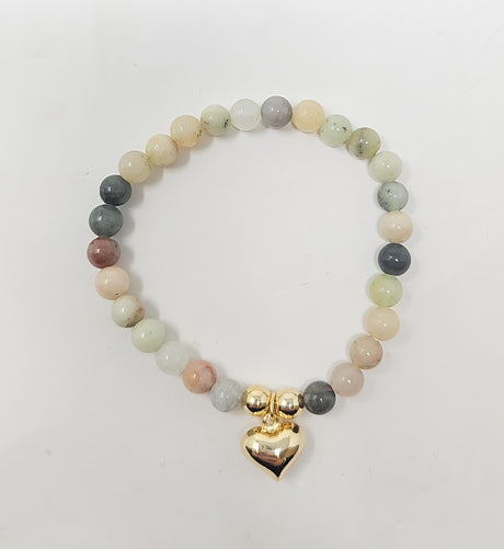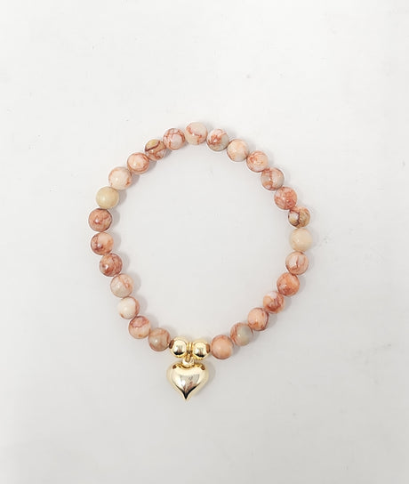 Zelly Red Picasso Jasper Beaded Gold Heart Charm Bracelet