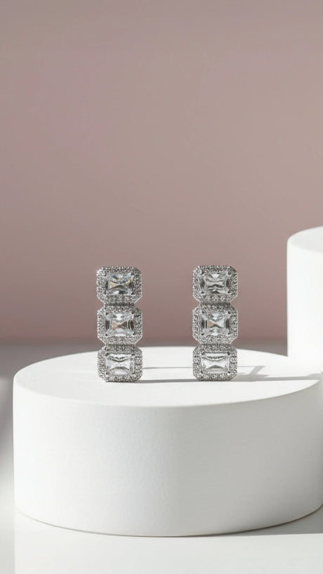 Eternity Mini Tear Drop Silver Crystal Stud Earrings