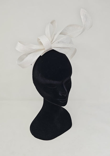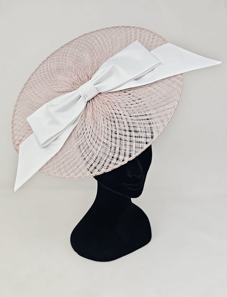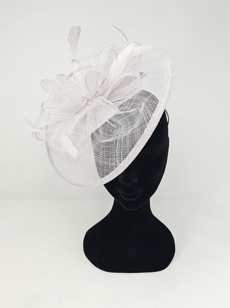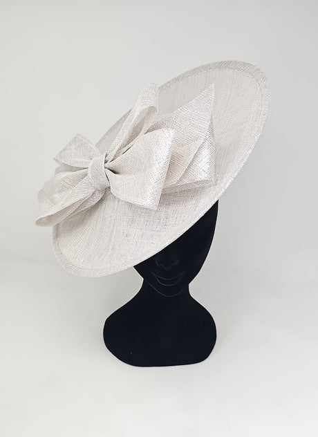 Ivory Silver Bow Adorned Large Disc Fascinator