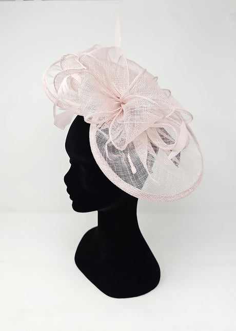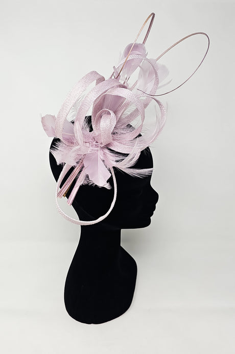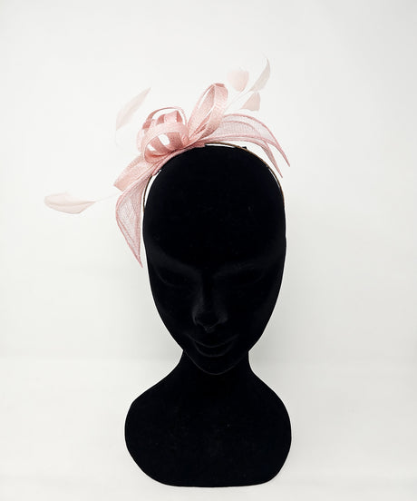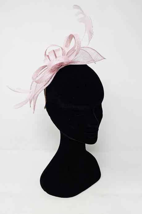 Rose Pink Sinamay Loop & Feather Hairband Fascinator