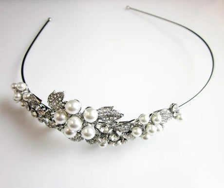 D&X London Audrey Silver & Cream Pearl Hair slides