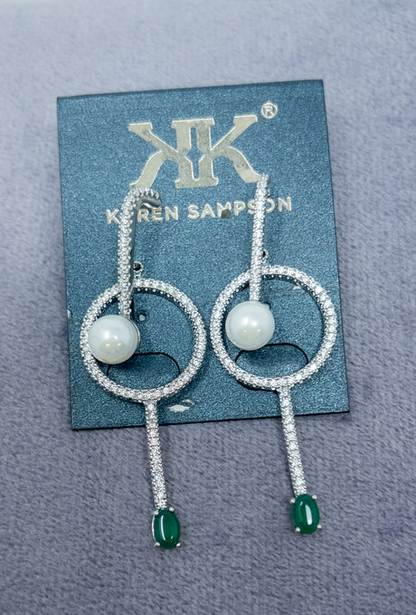 Karen Sampson Rhodium Emerald & Pearl Drop Earrings
