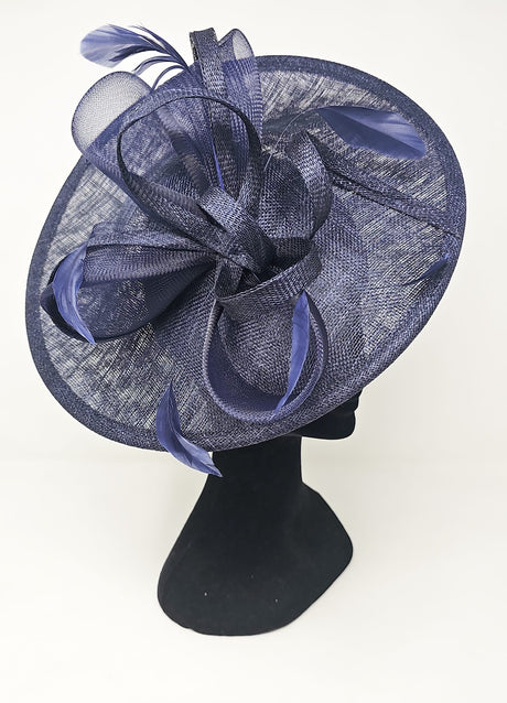 Metallic Almond Feather & Bow Round Disc Fascinator