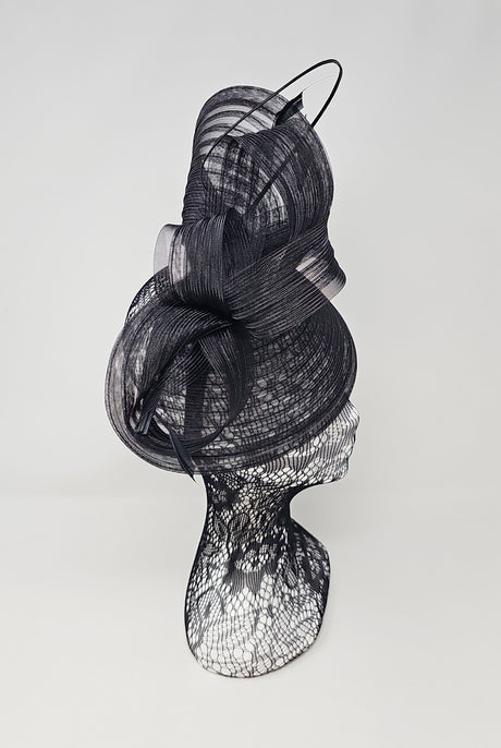 Black Sinamay Loop & Feather Hairband Fascinator