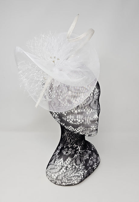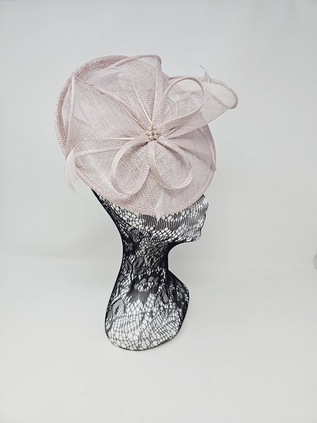 Pearl Silver Feather & Bow Round Disc Fascinator