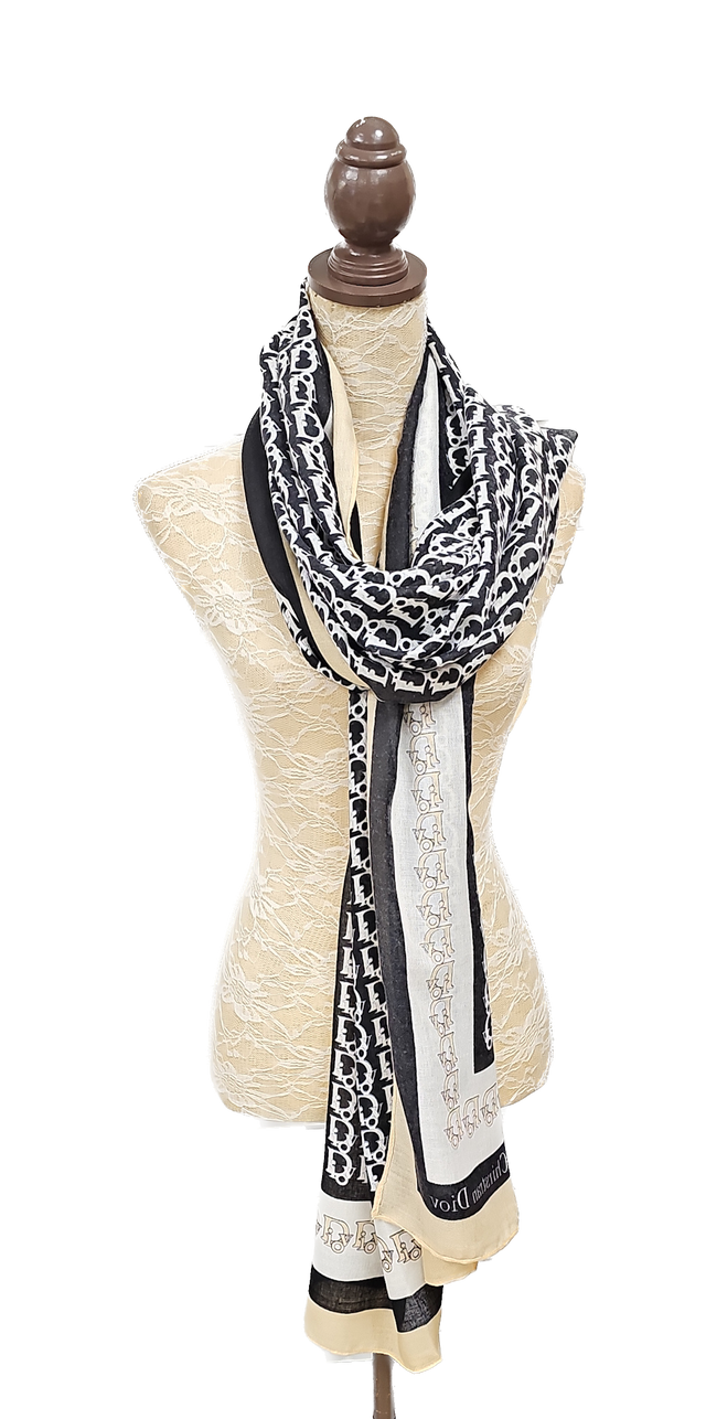 Black & Cream Beige Letter Printed Scarf is backordered and will ship as soon as it is back in stock.