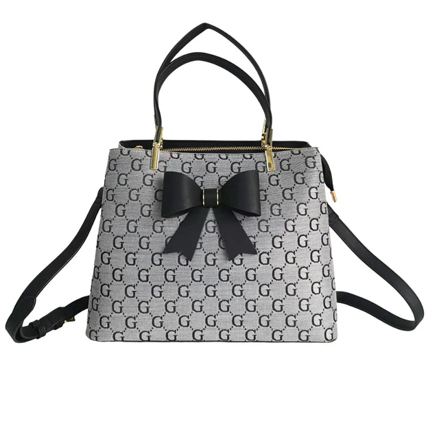 Black & Grey 'G' Large Tote Bow Handbag is backordered and will ship as soon as it is back in stock.