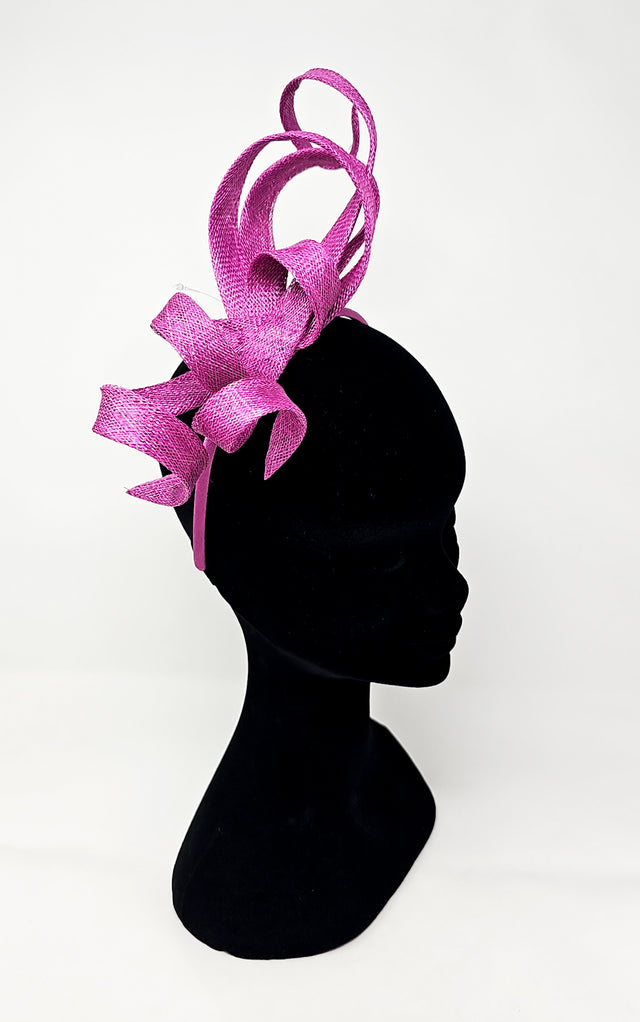 This show-stopping pinky purple cerise fascinator is the perfect accessory for your special occasion! With a unique spiral twist feature, this fascinator is sure to turn heads - it's a real showstopper! Bright and vibrant, this gorgeous statement piece will make any outfit pop.
