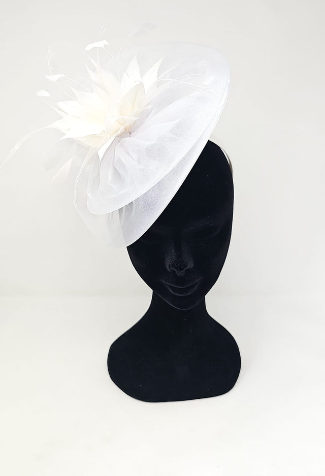 Pickup is available for Cool White Organza Halo Fascinator at Unit 4, Jennymount Business Park, North Derby Street