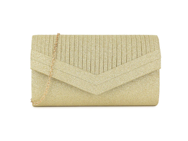 Gold glitter handbag shimmering perfectly for occasionwear. Comes with Gold Chain strap included