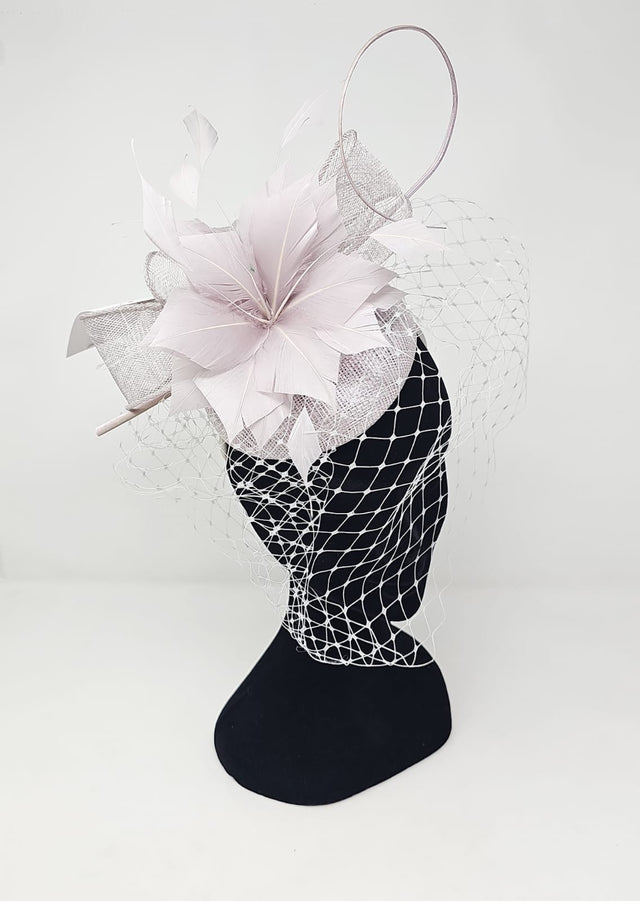 Metallic Pearl Veil Net Looped Hairband Fascinator