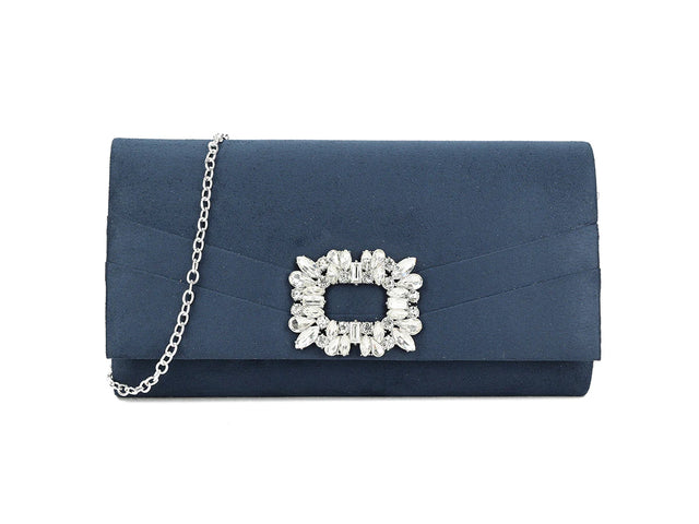 Style any outfit with this faux suede clutch bag with a feature crystal embellishment.