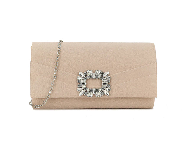 Style any outfit with this faux suede clutch bag with a feature crystal embellishment.