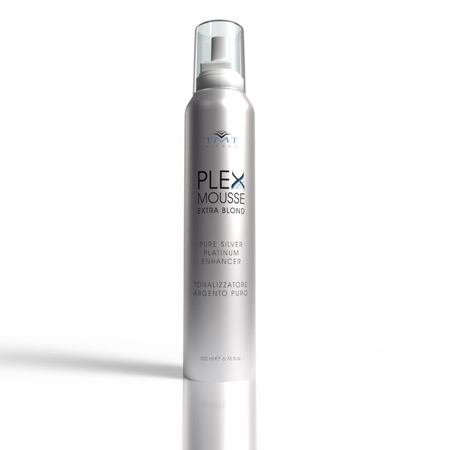 Plex Mousse Extra-Blond Silver is designed to tone down the yellow hues in bleaching or very light colours without leaving violet, blue or warm reflections. The Plex molecule acts as a protection allowing more pronounced lightening to be achieved.