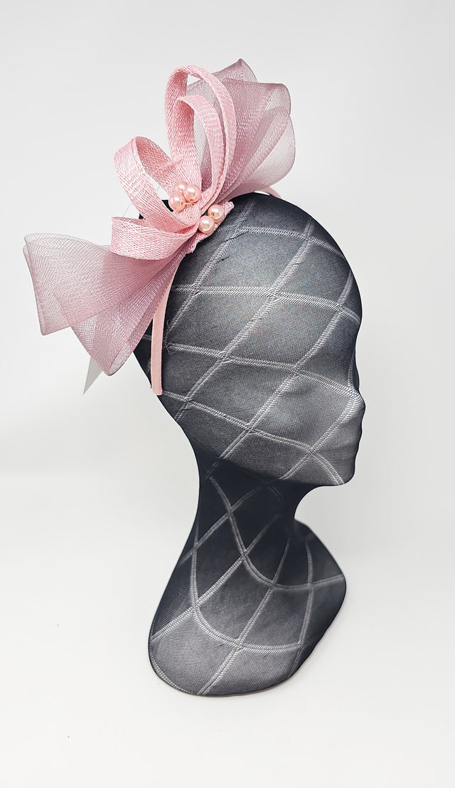 Rose Pink Bead Bow Loop Hairband Fascinator