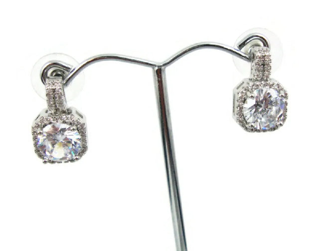These crystal mini drop earrings are plated silver with cubic zirconia stones