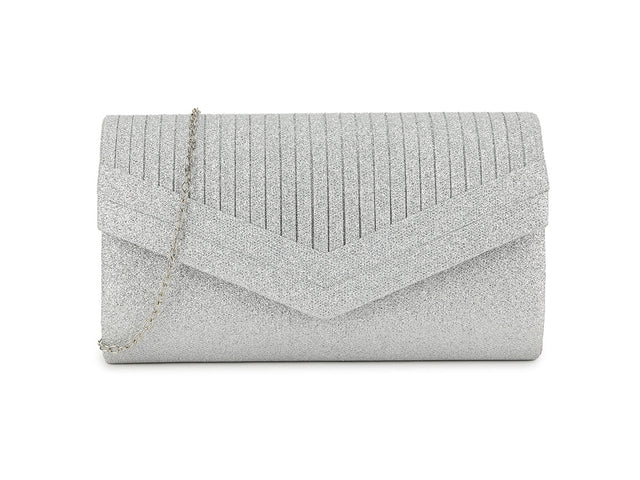Silver glitter handbag shimmering perfectly for occasionwear. Comes with silver Chain strap included