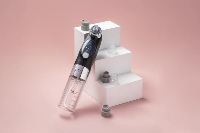 The STYLPRO Hydro Exfoliator uses a combination of suction and liquid circulation to extract impurities from the pores surface, while simultaneously injecting your chosen liquid into the pore.