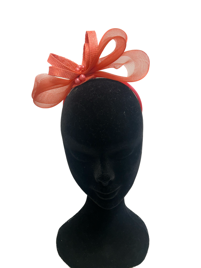 Tangerine Coral Bead Bow Loop Hairband Fascinator