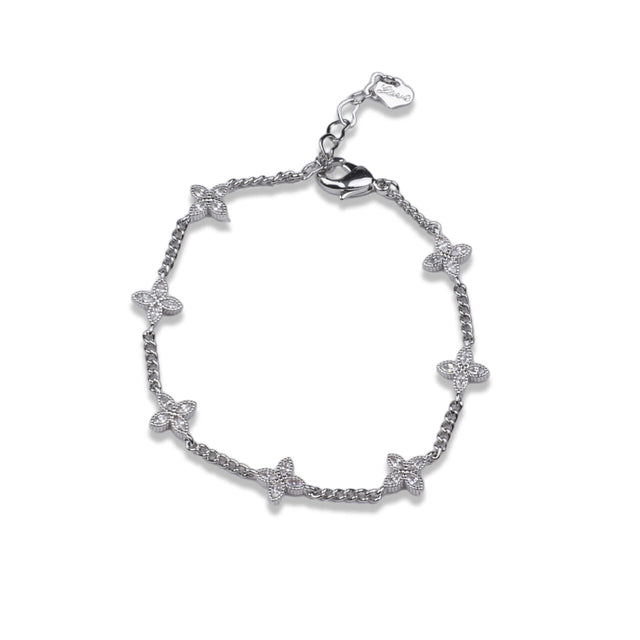 This multi-clover bracelet, available in gold or silver plated finish, is the perfect addition to any jewelry collection.