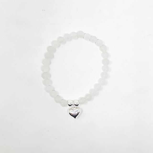 A hand made beaded bracelet with a silver plated heart charm. This bracelet has been thoughtfully chosen for you to help bring energy and healing . This stone is often used for meditation and spiritual growth.
